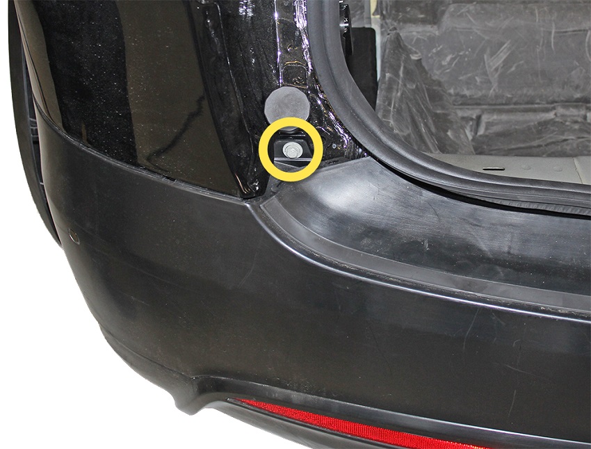 - On both sides of the vehicle, remove the bolt that secures the rear fascia to the body of the vehicle (torque 4 Nm).