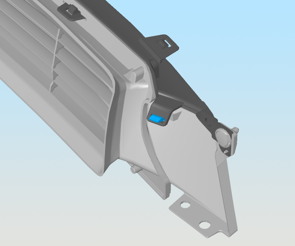- Release the clips that secure the upper closing panel to the lower grille.