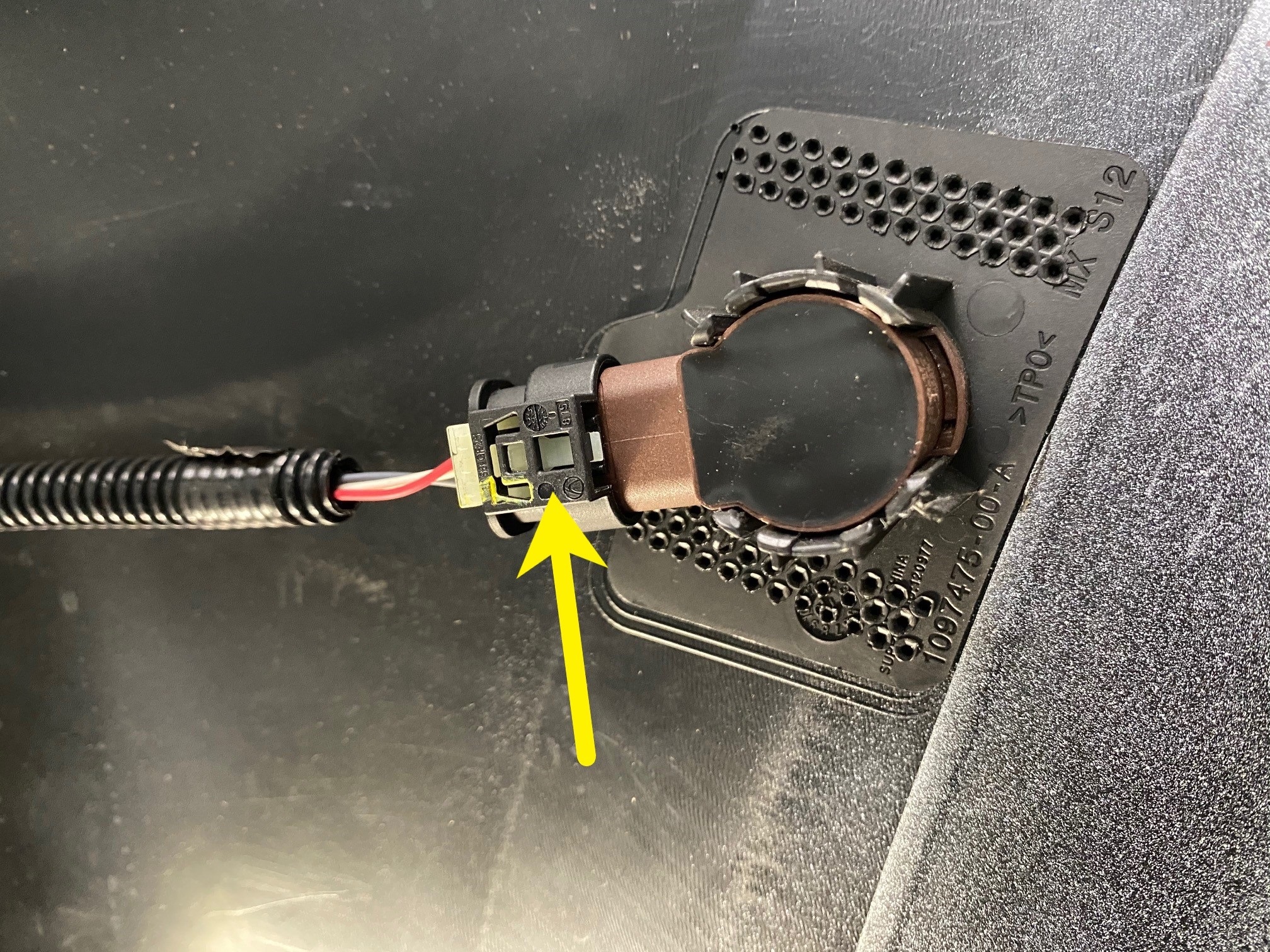 - Connect the electrical harness to the parking distance sensor, and then enage the locking tab.