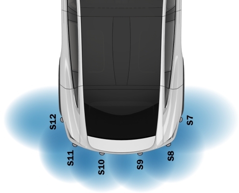 Outer parking distance sensors are S7, S8, S11, and S12. Inner parking distance