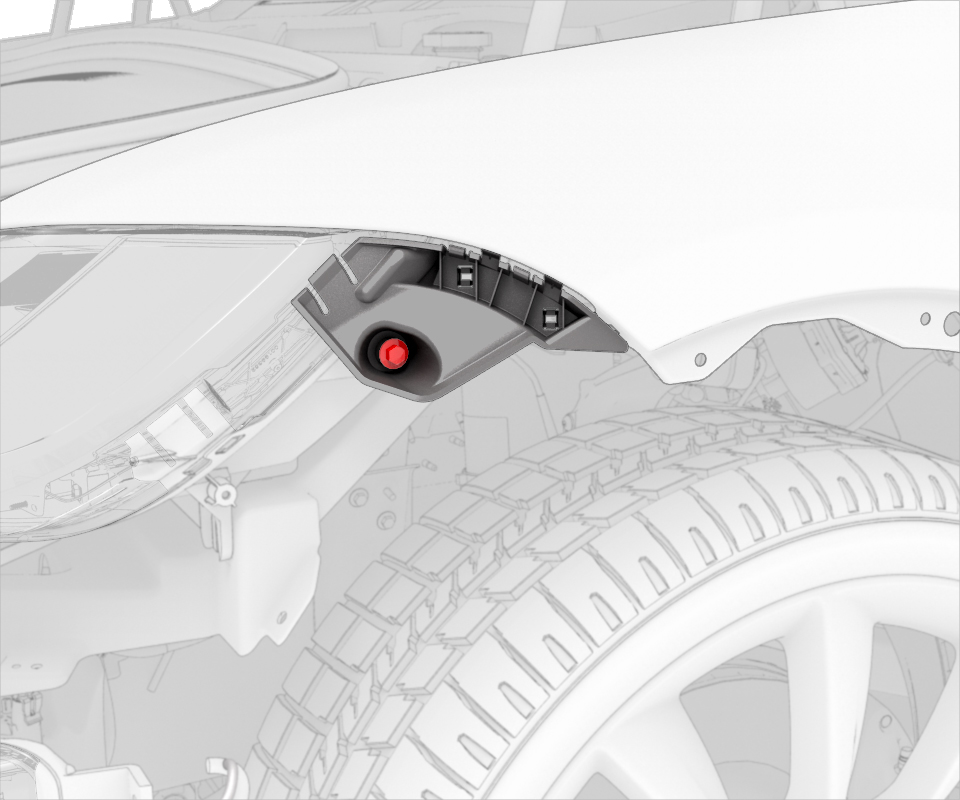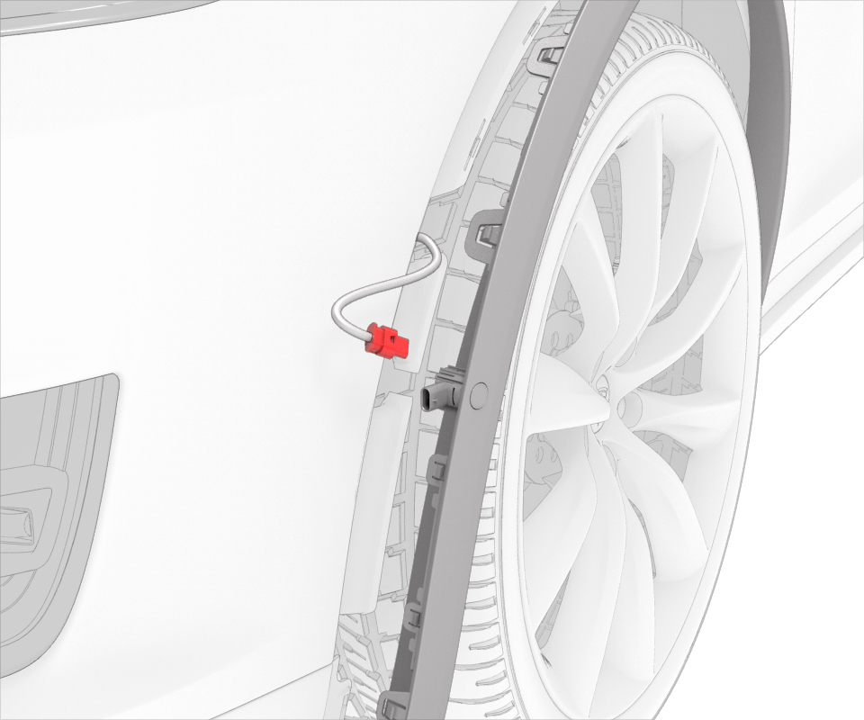 - Carefully flex the front half of the LH front fender garnish outwards, and then disconnect the electrical connector from the LH front fender garnish park assist sensor.