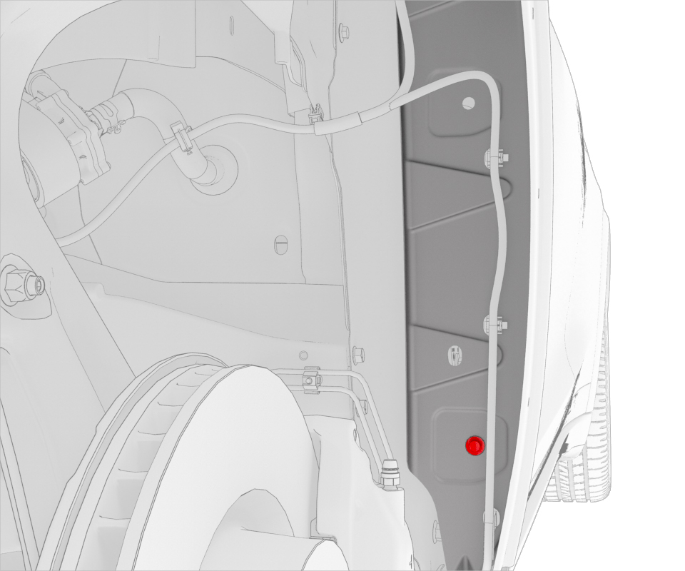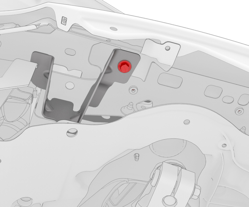- Install the bolt that attaches the inner LH front fender to the vehicle (torque 8 Nm).