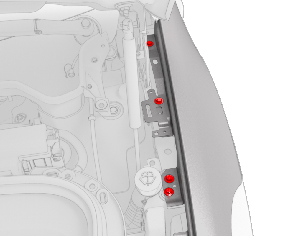 - Position the LH outer hood hinge cover on the LH hood hinge, and then install the clips (x2) that attach the cover to the vehicle.