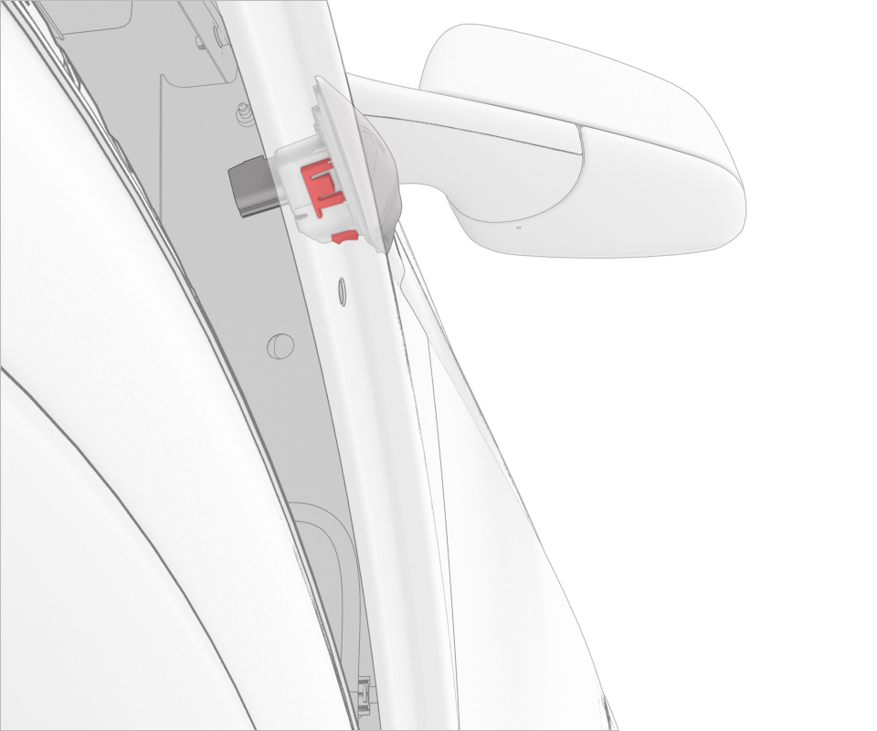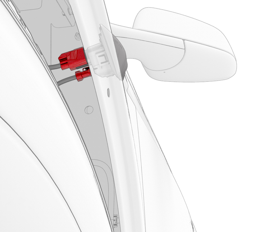 - Disconnect the electrical connectors (x2) to the side repeater and camera assembly.
