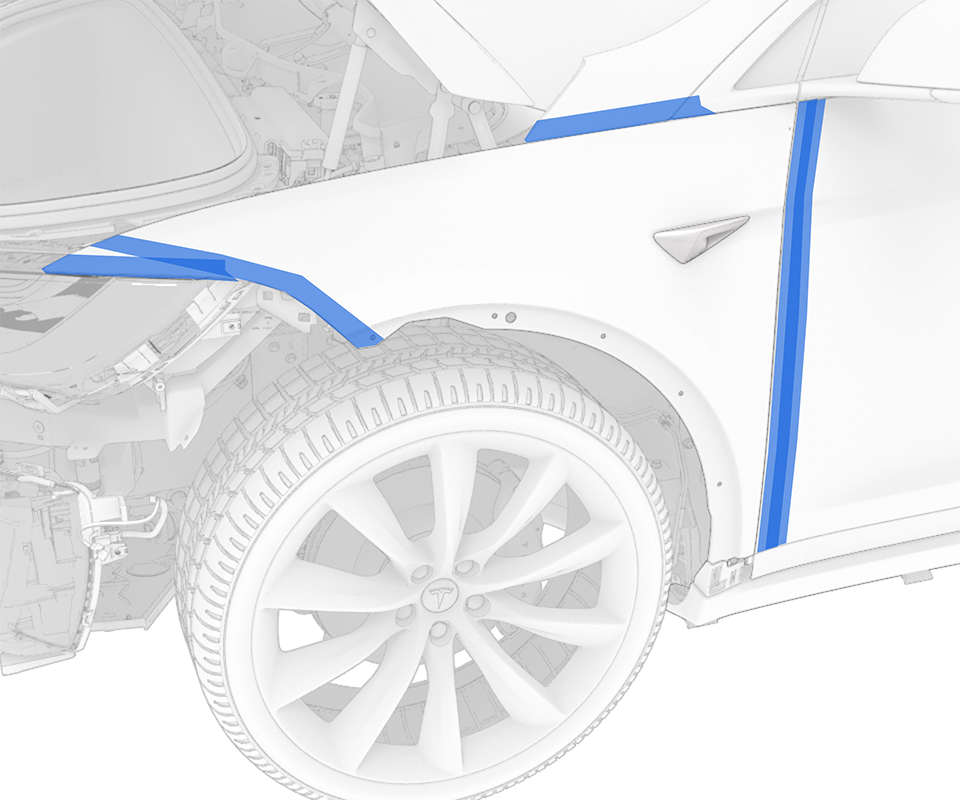 - Apply protective tape to the edges of the lower A-pillar and LH front door that are adjacent to the LH front fender.