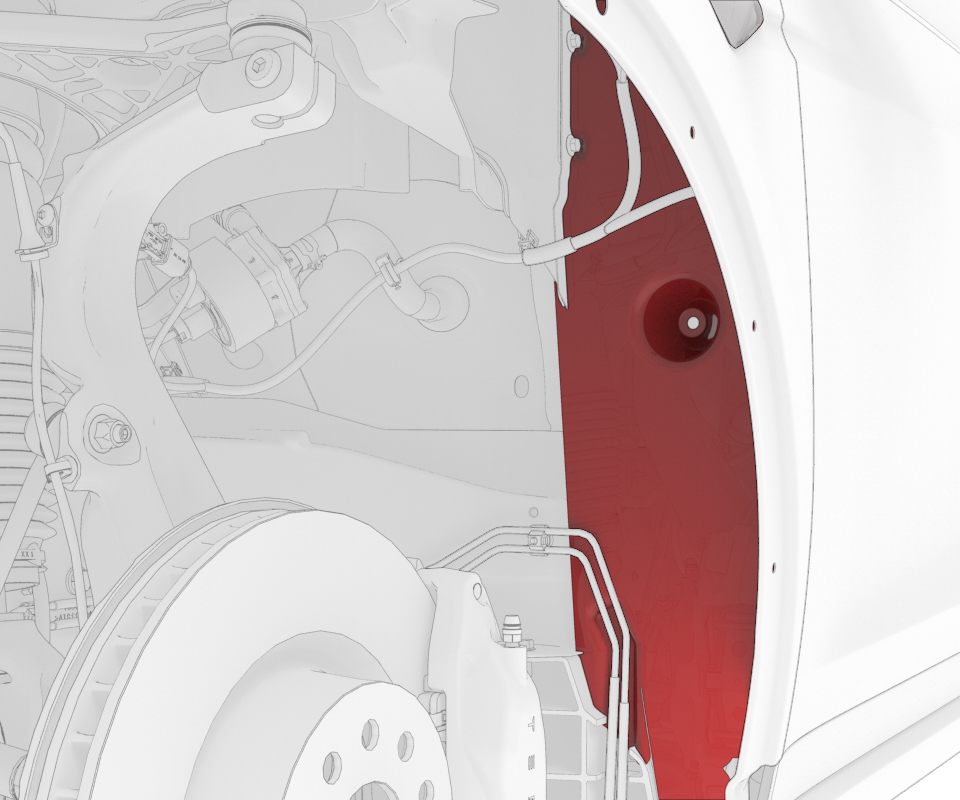 - Remove the bolts (x4) that attach the upper LH front fender to the vehicle.