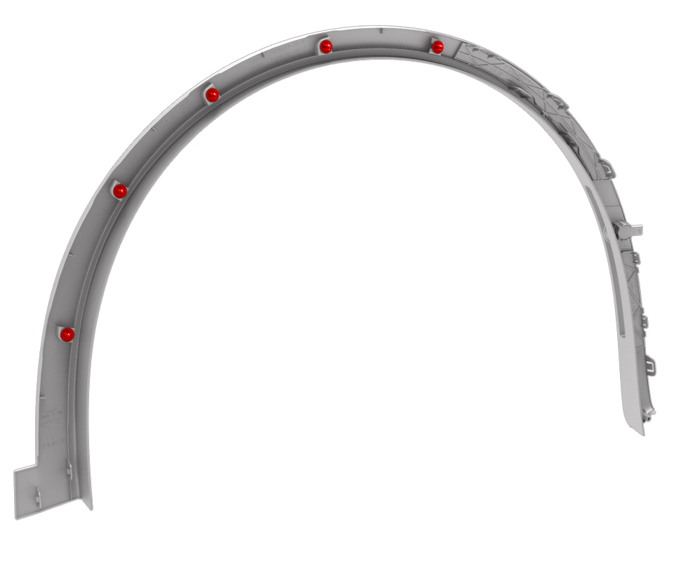 - Position the side repeater and camera assembly on the LH front fender, and then install the clips (x2) that attach the assembly to the fender.