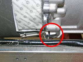 - Working in front of the small rear drive unit, remove the clip that attaches the NVH pad to the LH side motor mount.