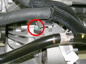 - Fasten the clip that attaches the low voltage harness to the coolant hoses.