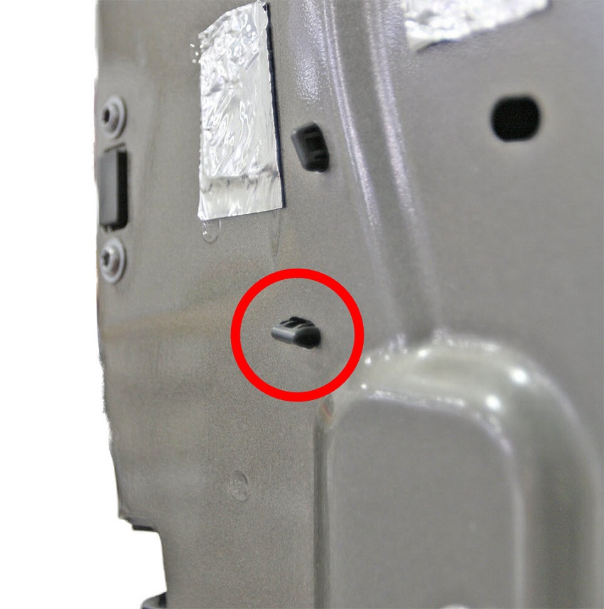 - Reach in through the door cavity and release the fir tree clip that secures the pinch sensor harness to the door.