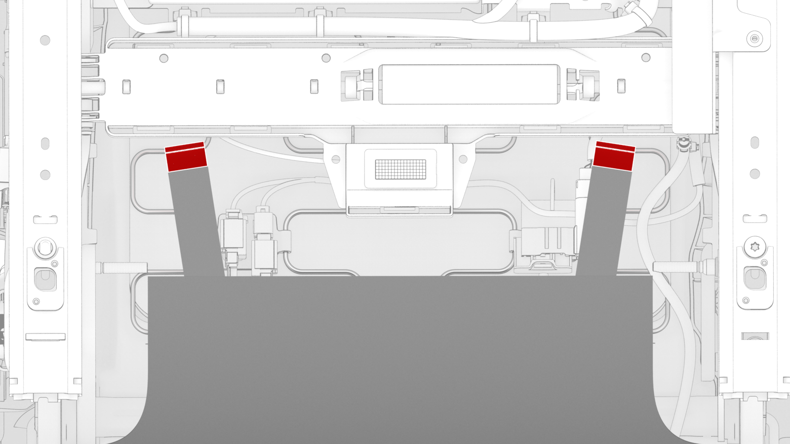 - Release the j-hooks that attach the rear toe kick to the underside of the driver's seat assembly.
