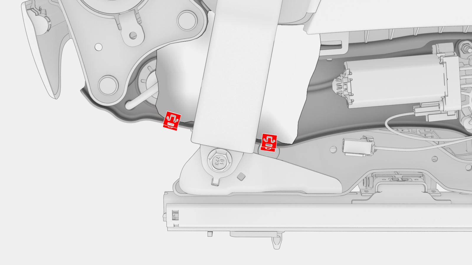 - Install the clip that attaches the electrical harness to the inner seat trim.