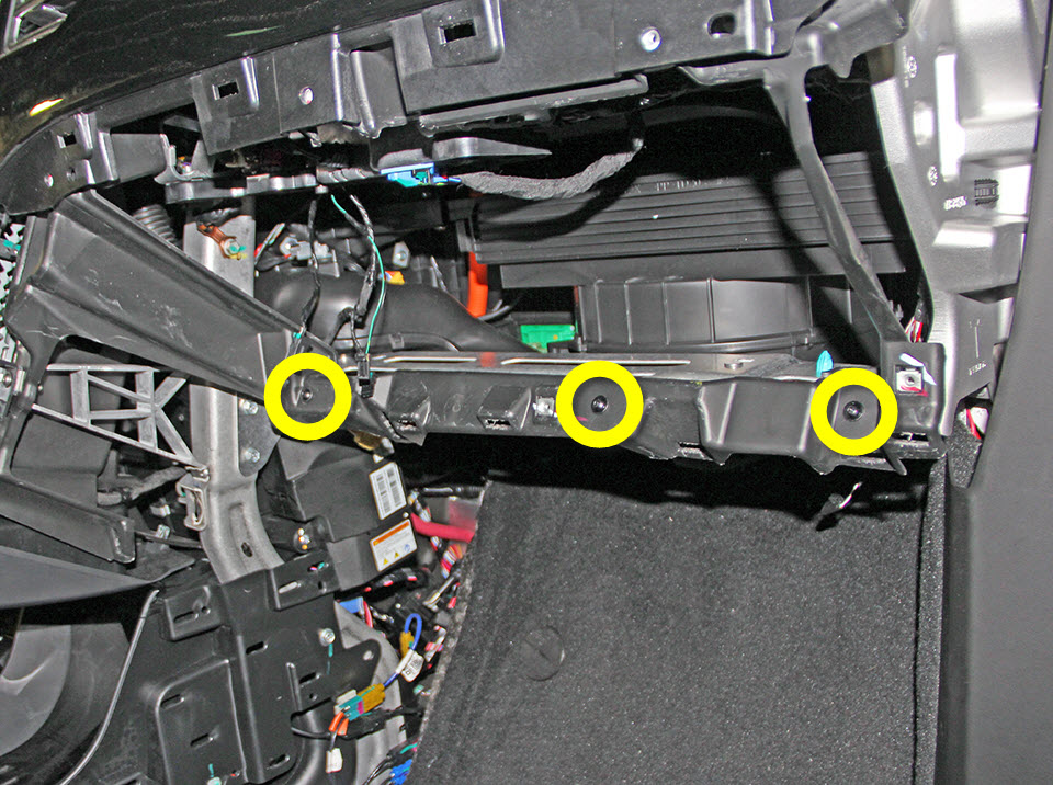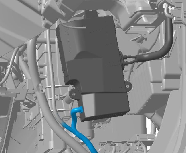 - Remove the screw (torque 1 Nm) that attaches the RH footwell duct to the HVAC assembly, and then remove the RH footwell duct.