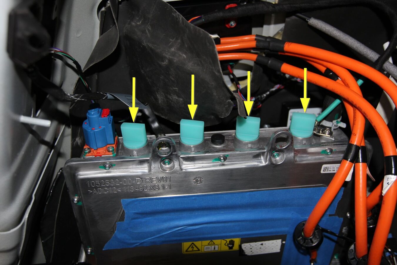 - Plug the holes on top of the charger where the HV cables were installed.