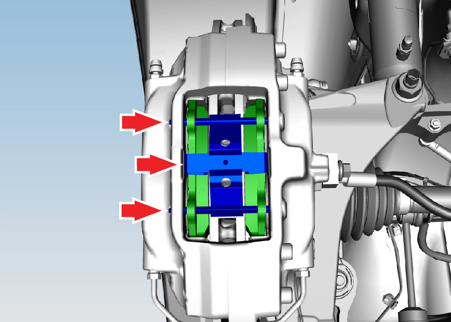 - Check that the caliper pad slides are dirt free and the seals are in good condition.