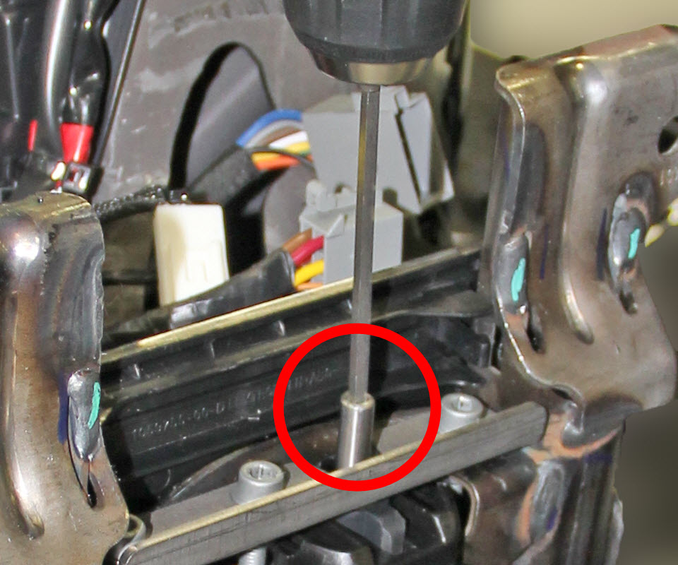 - Insert the square bit into the driveshaft hole in the seat motor.