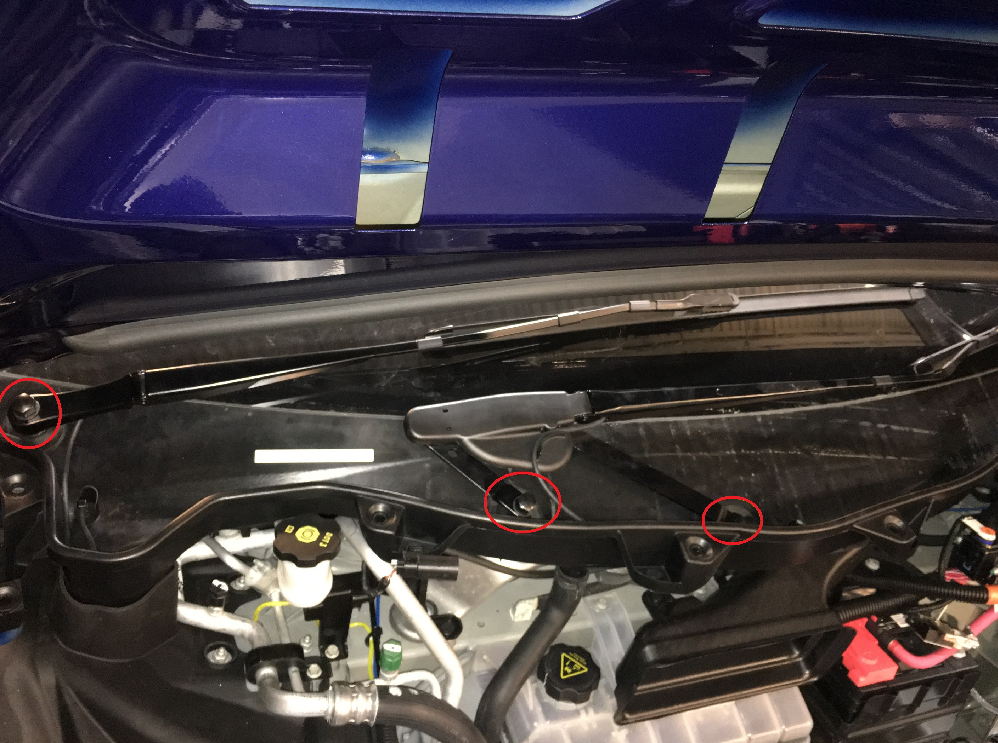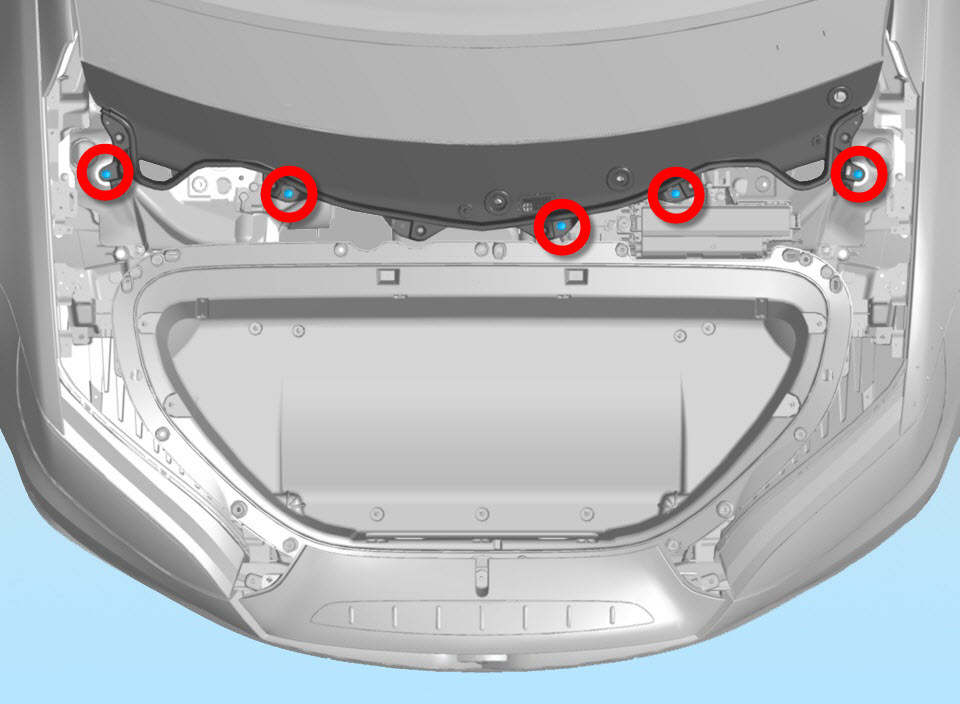 - Remove the push pins (x5) that secure the cowl screen to the vehicle, and then move the cowl screen away from the windshield..