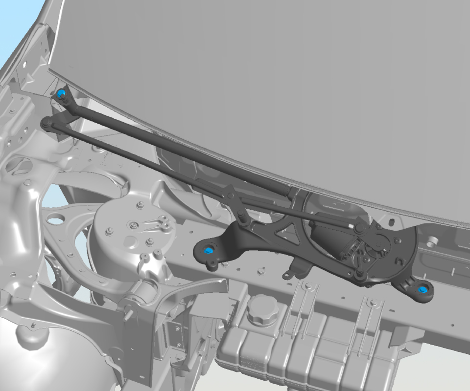 - Release the bolts (x3) (torque 9 Nm) that secure the wiper module to the body.
