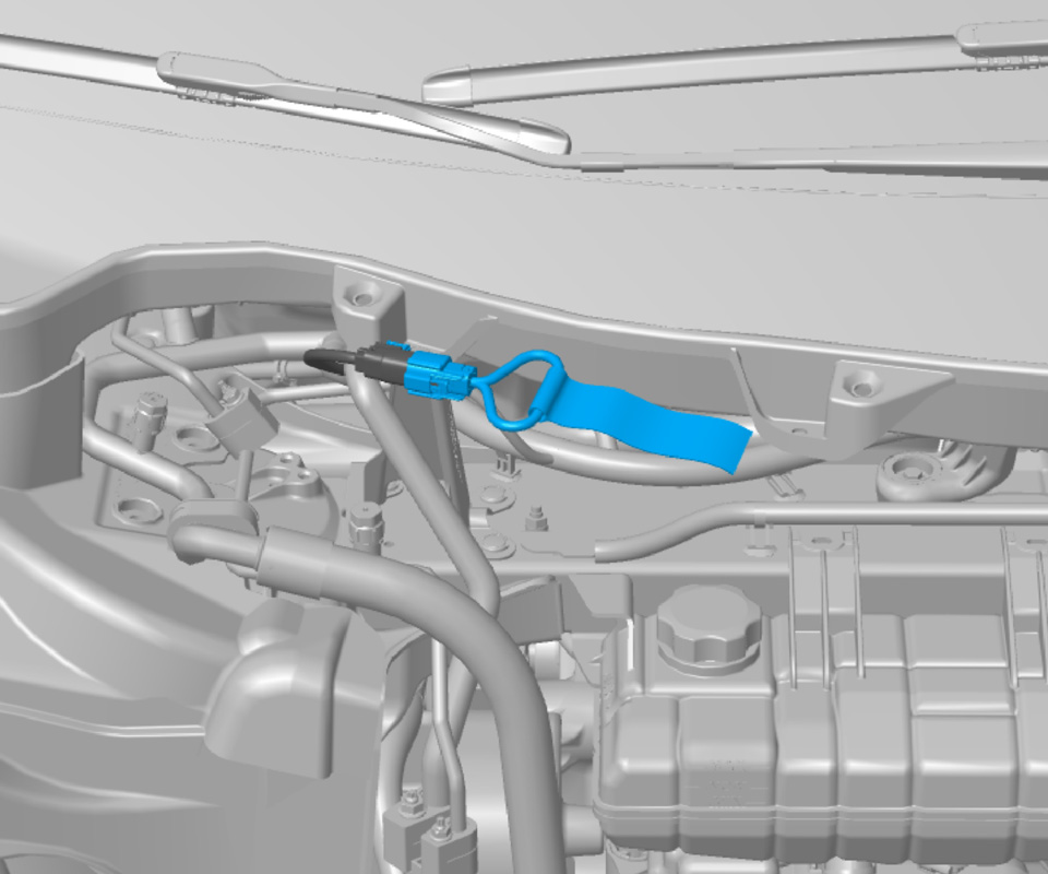 - Remove the clips (x2) on the LH and RH outer hood hinge covers, and then remove the covers.