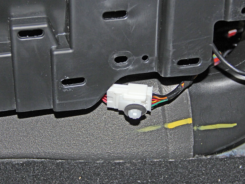 - Release the fir tree clip that secures the 12V electrical connector to the center console.