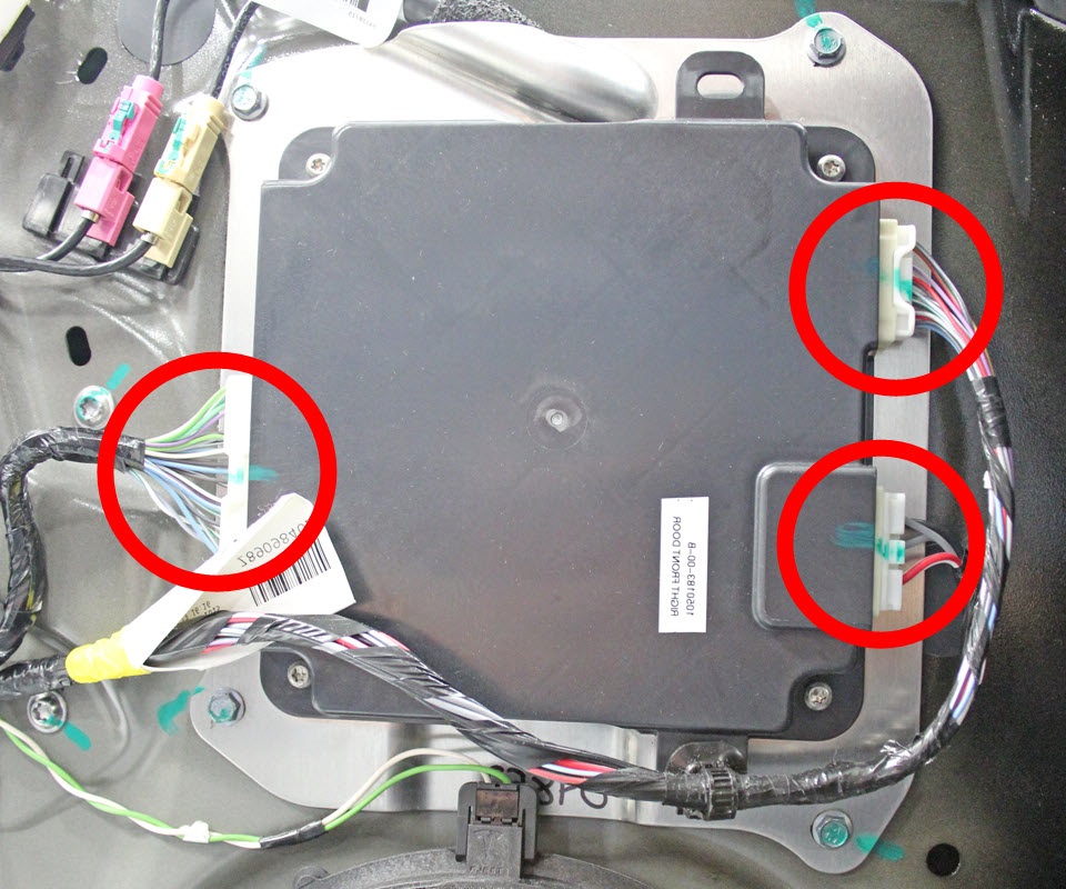 NoteIf the door controller is not communicating, access the power front door actuator physically, see Front Door Drive Unit - LH (Remove and Replace), and then read and write down the different calibration values as shown on the label on the actuator itself. - Disconnect 12V power. See Disconnect 12V Power.