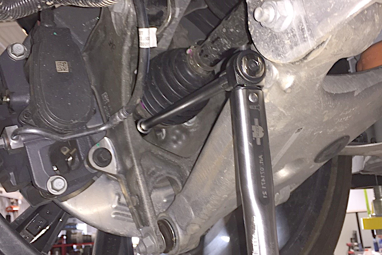 - Remove the LH rear axle nut (torque 245 Nm).