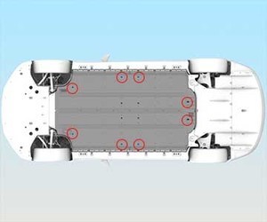 Install bolts securing LH side of HV battery to body with battery powered drill
