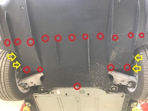 Note3x screws, T25, 6 Nm, 1x bolt, 10mm, 4 Nm, 2x push pins, Install new nyloc nut 15mm, 35 Nm