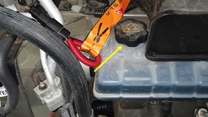 - Position coolant drain container under the front of the vehicle to catch vehicle coolant