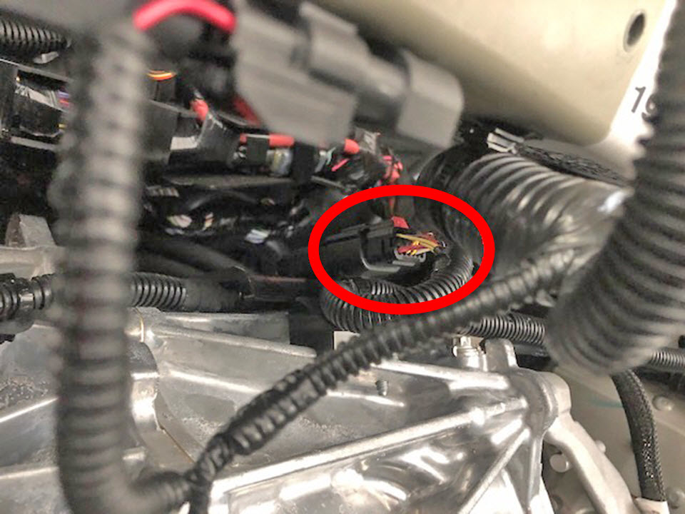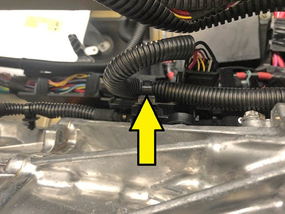 - Remove the edge clip that attaches the front drive unit electrical harness to the connector bracket.