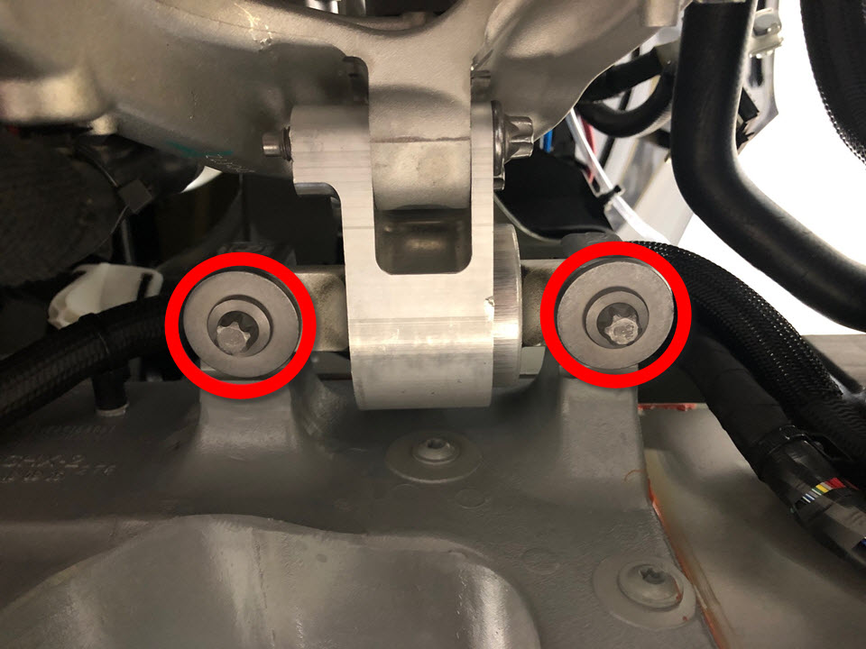 - Remove the bolts (x2) that attach the clevis mount to the isolator mount (torque 92 Nm).