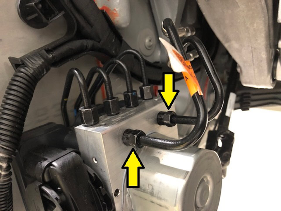 - Disconnect the brake lines between the ABS modulator and the master cylinder (torque 23 Nm), and then move the brake lines aside.