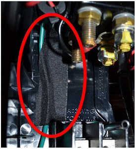 - Ensure that the green ground wire is secured to the back of the Wall Connector. If it is not, use wire harness tape or other high temperature resistant tape to secure it to the back of the Wall Connector.