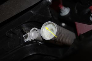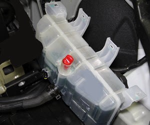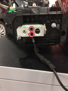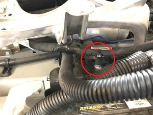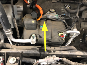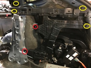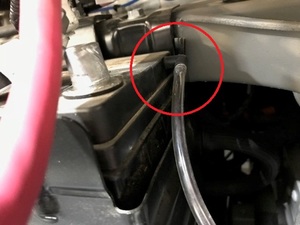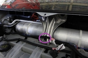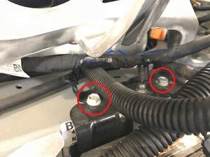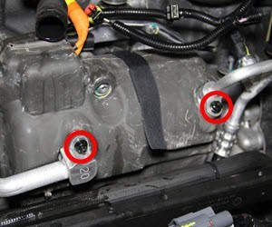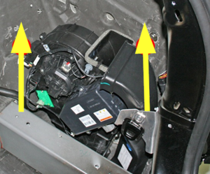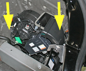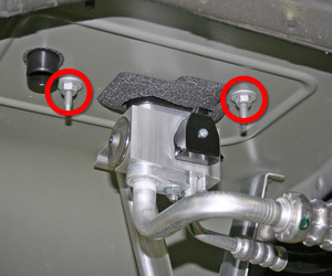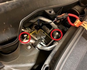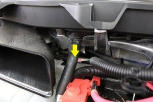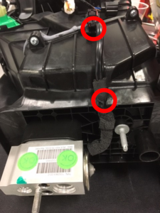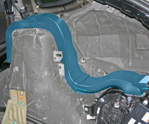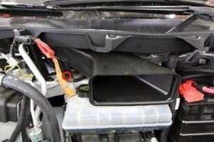 - Release tab securing LH foam duct to plastic duct and move duct to the side