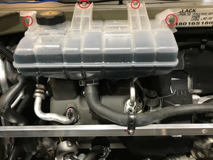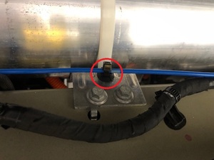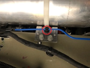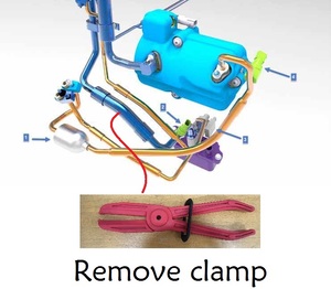 Install fir tree clips securing blue airline to air tank reservoir brackets