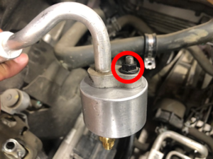 Note1x bolt, 5mm hex, 20 Nm, Install new O-ringsNoteIf any debris is found at the front TXV, replace the TXV by a new one.