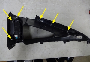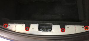 Note5x push clips, One is hidden between 3rd row seat and trunk side carpet panel