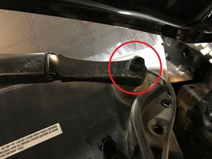 Note1x nut, 17mm, 35 Nm, Align tip of wiper blade to mark on windshield