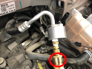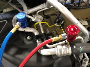 Remove dust caps from vehicle’s high-side and low-side service ports