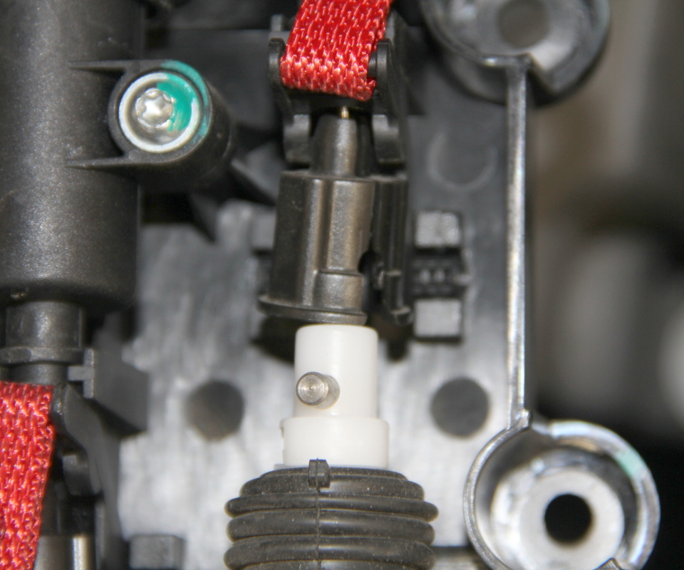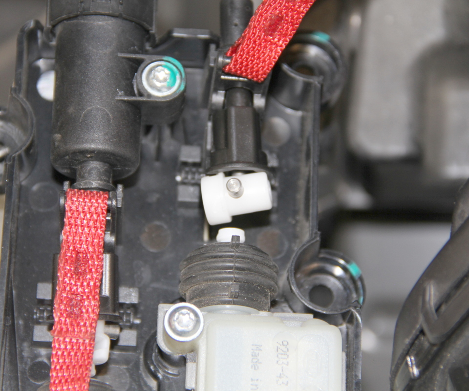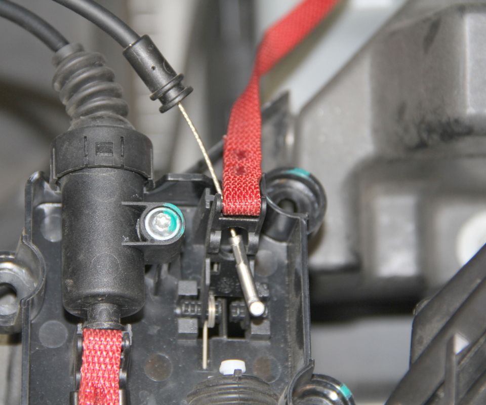 - Slide the black cap from the primary actuator onto the primary cable.