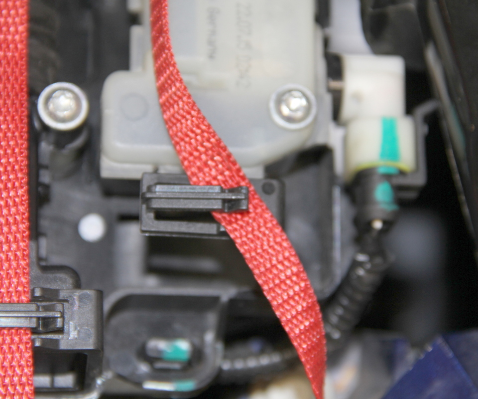 - Separate the manual release strap from the primary actuator assembly bracket retainer.