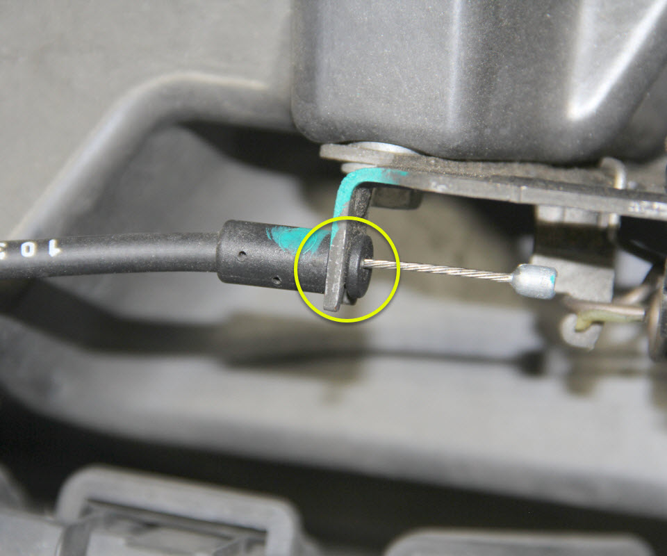 - Release the clip that secures the primary cable to the latch bracket and remove the cable from the bracket.