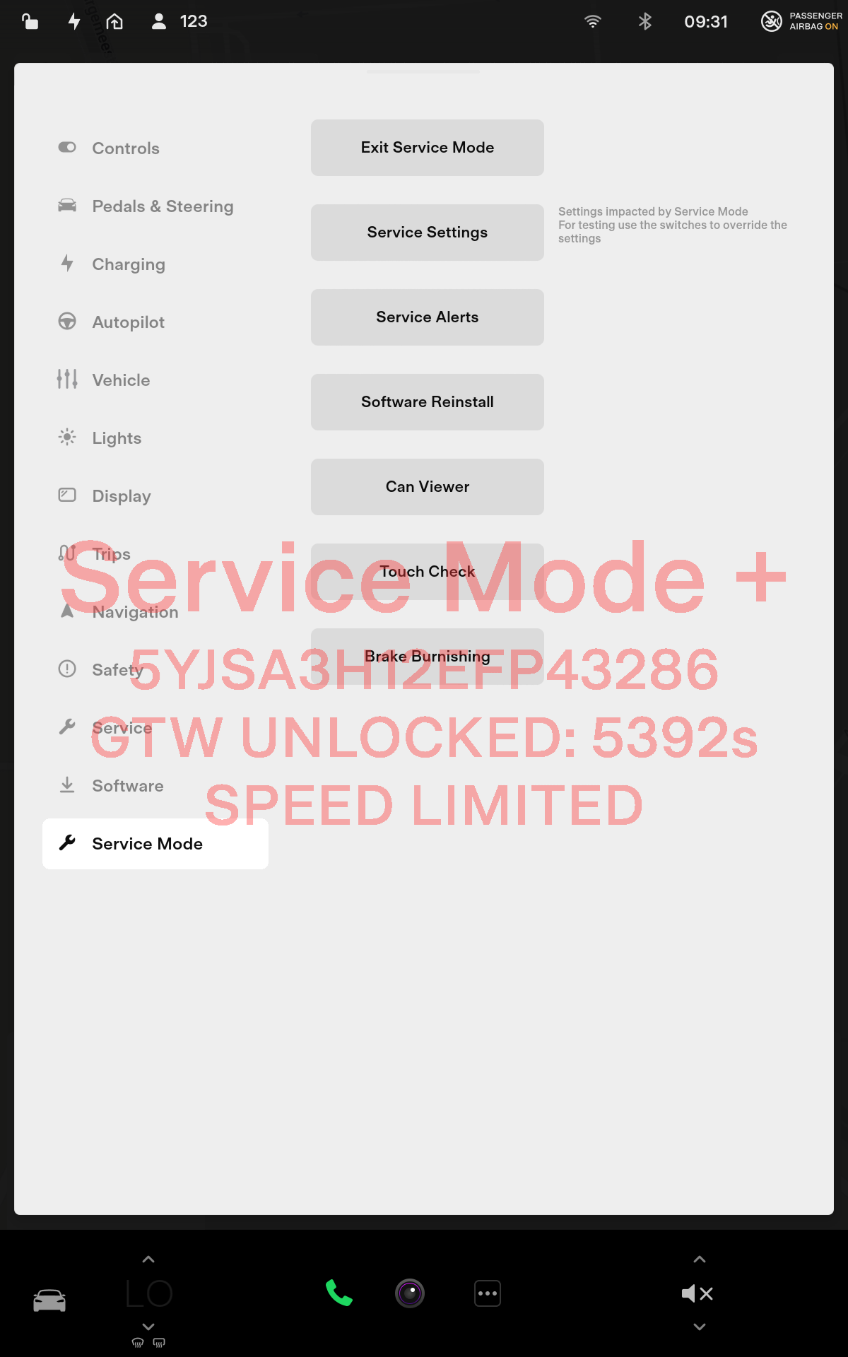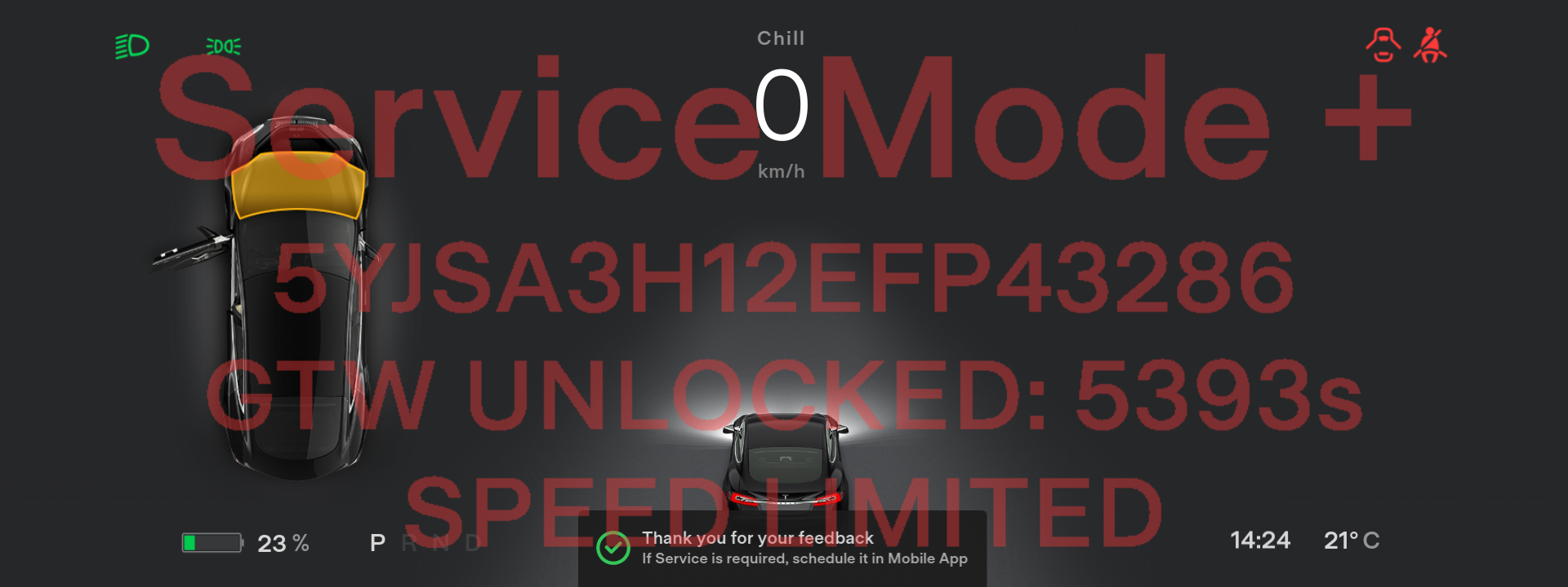 The instrument cluster and MCU briefly display GTW UNLOCKING. Once the gateway is unlocked, the instrument cluster and MCU will display GTW UNLOCKED and a countdown timer that indicates the remaining time in seconds for the gateway to be unlocked (max. 90 minutes).