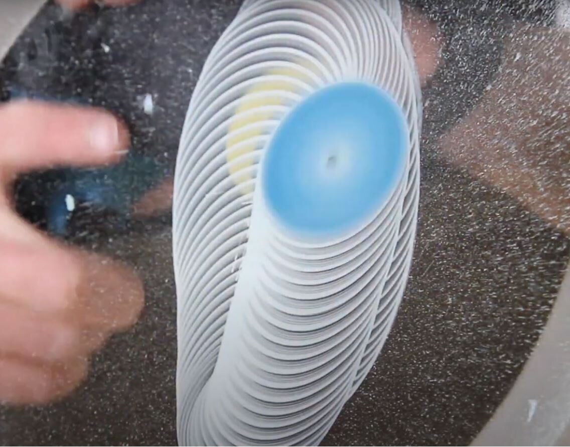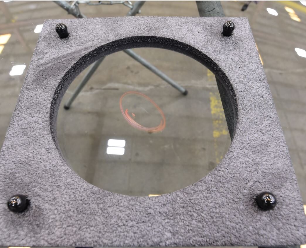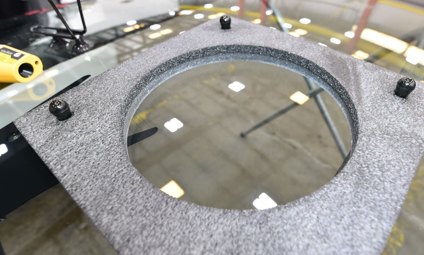 - Place the polishing disk flat on the glass.