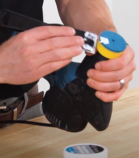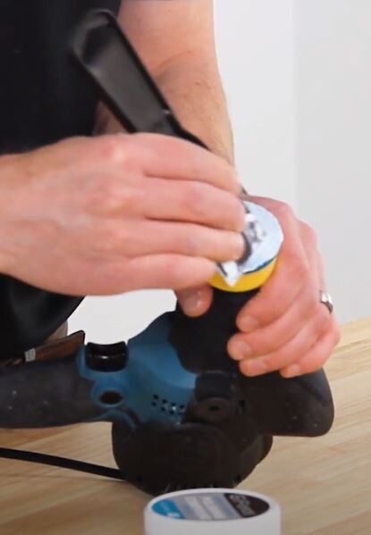 Install the polishing disk on the backer pad.
