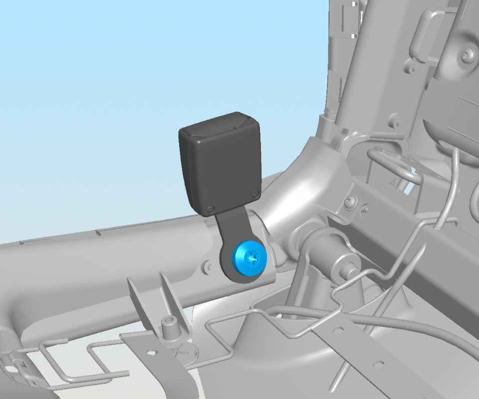- Remove and discard the fastener that secures the buckle assembly to the seat frame (torque 45 Nm).