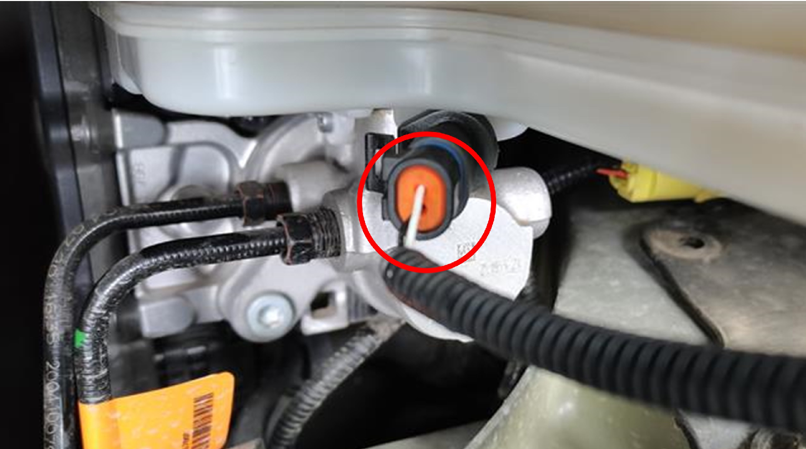 - Disconnect the brake fluid reservoir level sensor connector, and then remove the sensor from the reservoir.