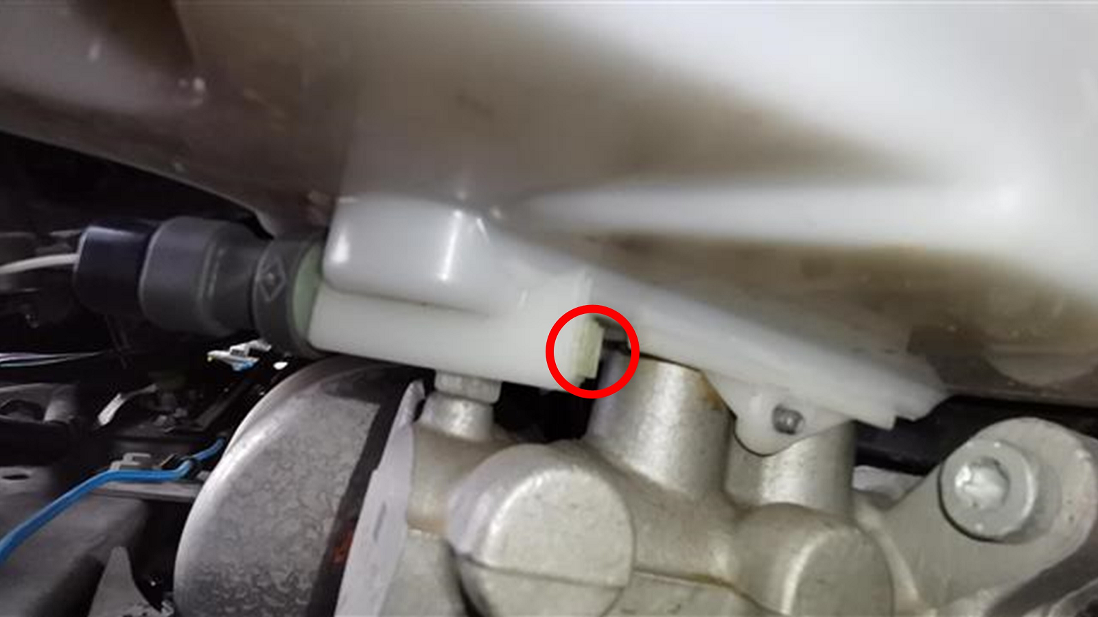 - Release the tabs that attach the brake fluid level sensor to the brake fluid reservoir.