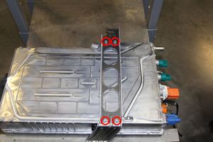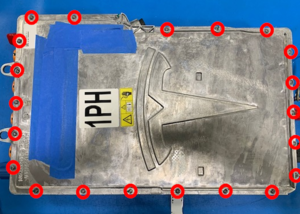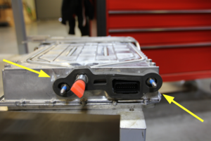 - Install the mounting brackets onto charger, and then install new bolts (x4) to attach the brackets to the charger (torque 7 Nm).