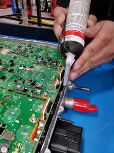 - Use an ESD-safe vacuum cleaner to remove any loose sealant or gasket material from the charger.